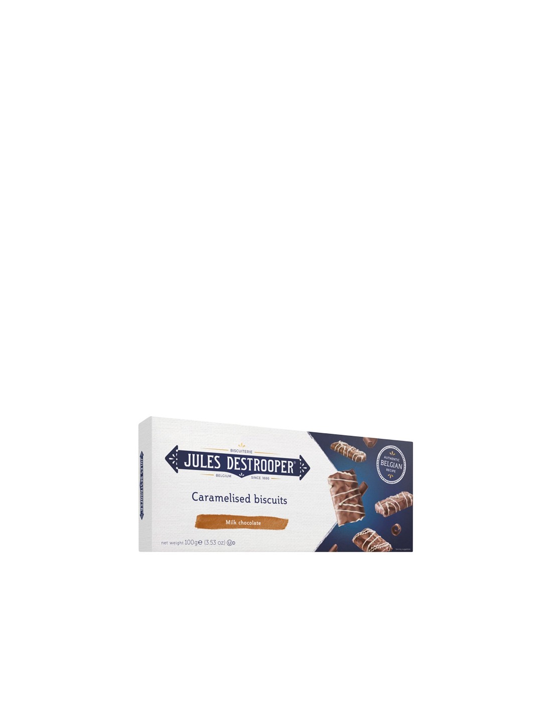 Producto gourmet Biscuits de Canela recubiertos de Chocolate con Leche 100 gr. elaborado por Jules Destrooper en Bélgica.