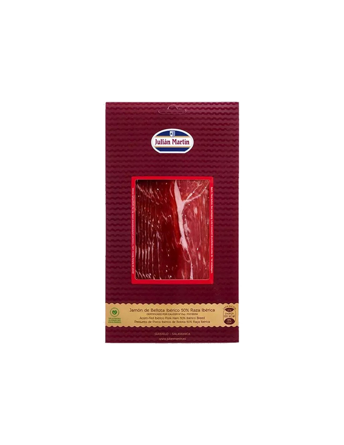 Producto gourmet Loncheado Jamón Ibérico de Bellota Julián Martín 100 gr. elaborado por Julián Martín en Guijuelo, Salamanca.