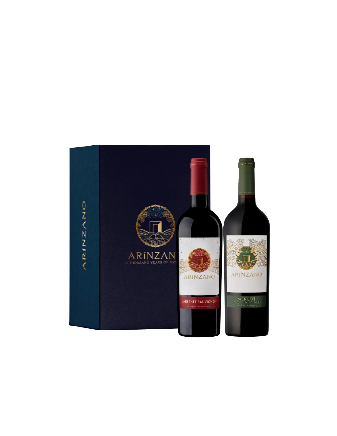 1 Botella Arínzano Cabernet Sauvignon 2019 + 1 Botella Agricultura Biológica Merlot 2019 + 1 Estuche de Cartón 2 Botellas Arínzano